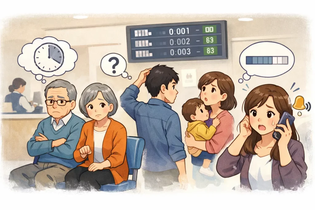 窓口業務でよくある悩みのひとつが、整理券を使った順番整理です。混雑が続く時間帯には、「待ち時間が長い」「今どこまで進んでいるのか分からない」「自分の番を聞き逃したかもしれない」といった声が出やすくなります。ただ、こうした不満を丁寧に見ていくと、利用者が本当に困っているのは、待つことそのものだけではないと分かります。
