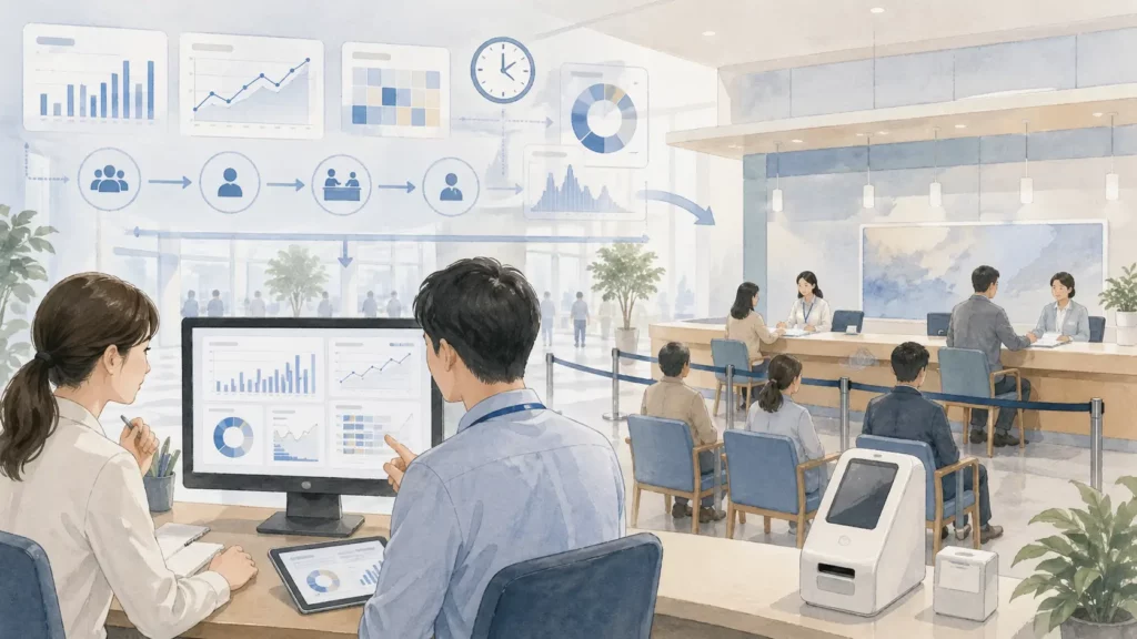 窓口や受付の現場では、「今日は混んでいる」「午前中はいつも忙しい」「月曜日は来庁者が多い」といった感覚が蓄積されていきます。こうした現場感覚はとても大切です。実際に対応している職員だからこそ分かる混雑の空気や、利用者の動き、問い合わせが増えやすい時間帯は、数字だけでは見えにくい情報でもあります。